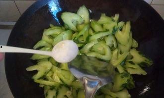 2. 炒虎瓜:将虎瓜片炒至断生,加入适量的盐、生抽、鸡精等调料,翻炒均匀即可。